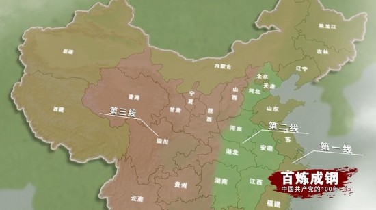 所谓三线,是按地区划分的。一线是东北及沿海各省市,三线是指云、贵、川、陕、甘、宁、青、豫、鄂、湘等11省区,其中西南的云、贵、川和西北的陕、甘、宁、青俗称大三线。二线是指一、三线之间的中间地区;一、二线地区各自的腹地又俗称小三线。