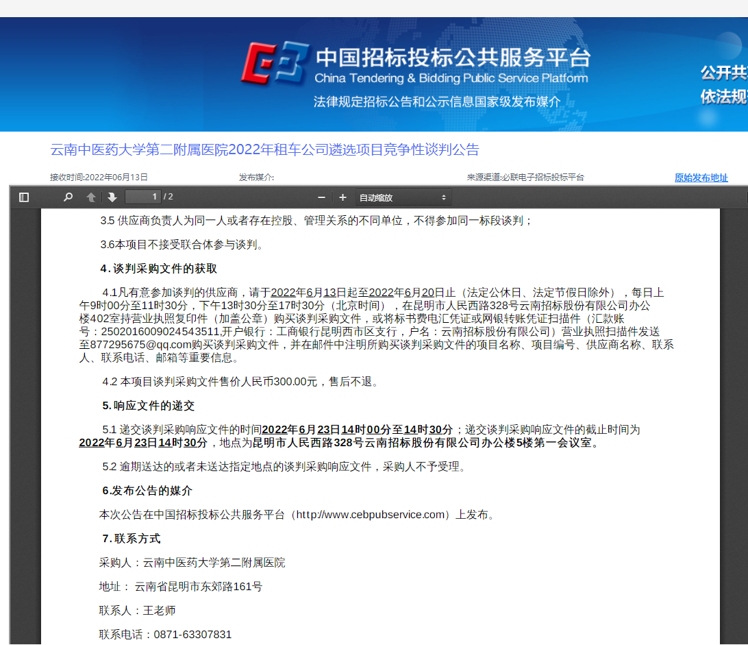 下一篇:云南中医药大学第二附属医院近期招标情况公示