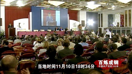2001年,卡塔尔首都多哈,当地时间11月10日18时34分,世界贸易组织第四届部长级会议,审议通过了中国加入世界贸易组织的决定。一个月后,中国正式加入世界贸易组织。