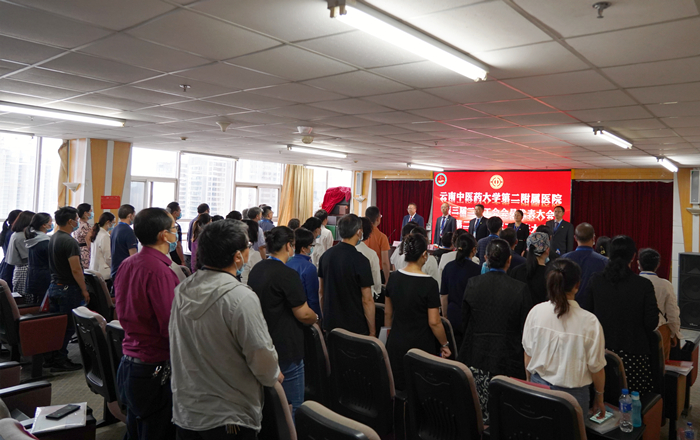 云中二院讯(通讯员 何晓阁)6月23日,云南中医药大学第二附属医院第三届二次工会会员代表大会暨第二届二次职工代表大会在医院22楼报告厅召开,全院正式代表、特邀代表共59人参会。下午13:30时,大会在庄严的《义勇军进行曲》中拉开帷幕。