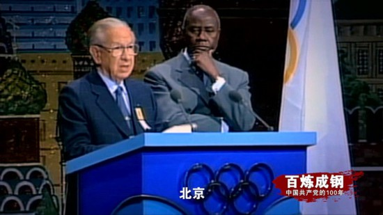 萨马兰奇:“2008年奥运会主办城市是——北京。”