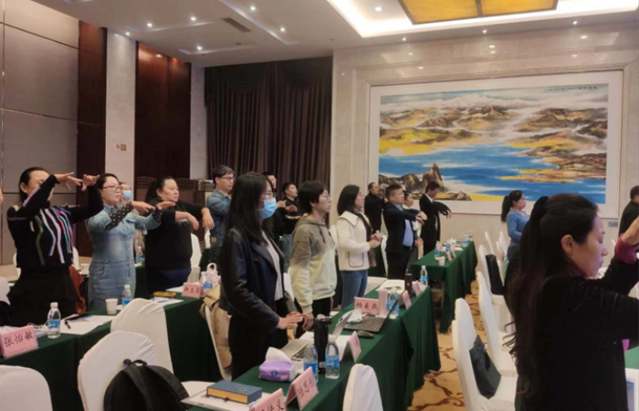 邰先桃从中医运动疗法、心身健康、生命在于运动三个方面深入浅出地进行讲授。引导大家探讨健康生活的真谛,教授大家如何运用黄帝内经十二时辰养生。并把中医运动观念分享给与会人员,向与会人员分享太极拳、“补肺益气”养生操、云中养生易筋经、脊柱保养功等养生功法,教大家如何调身、调息、调心,让身体姿势、动作、呼吸和思维意识活动相互协调从而使心身同调、阴平阳秘、身体健康。