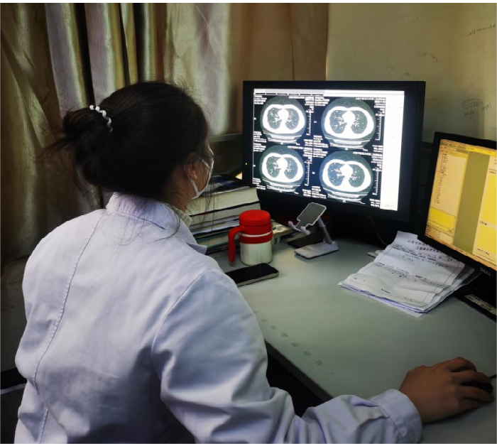 2023年1月3日,医学影像科CT室单日接诊人数创下新高,当天的值班医生谢星独自一人重复了近10小时的摆位、扫描,打印胶片。医学影像科医生在厚重的防辐射门内,默默充当着疫情诊断的“眼睛”,为临床标记“路标”,始终冲锋在最前线。为了检查报告能及时出具,所有医生每天都保持着长时间、高强度的阅片。 医生吕斌感染后,本该休息的他在听闻科室排班困难后,表示自己离医院近,可以随叫随到;党员医生杨文雨说:“那么多病人需要我们,我是一名党员,现在不是我休息养病的时候”。