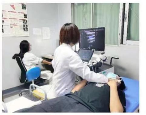 (王丹主任为患者检查甲状腺) (甲状腺结节超声图像)