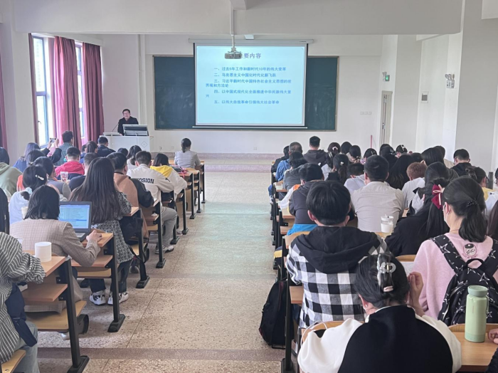 云中二院讯(通讯员 马婕、黄万琳)为深入学习宣传贯彻党的二十大精神,多角度解读、深层次宣传党的二十大精神,在全面学习、全面把握、全面落实上下功夫,3月30日,学校二十大精神宣讲团成员、马克思主义学院副书记张根生为学院师生党员宣讲党的二十大精神,学生党总支书记王丽娟主持宣讲报告会。