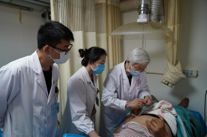 医院党委书记唐柱生、院长袁恺陪同朱勉生教授深入临床科室进行调研。朱教授从针前如何给患者“调身、调息、调神”,针时如何针刺时间穴位、空间穴位、靶向穴位,以及取针后如何采集患者的“得气反应、得气效应”几个方面进行详细的时空针灸临床教学。施针后,几名患者均感觉症状明显改善,身体舒适。