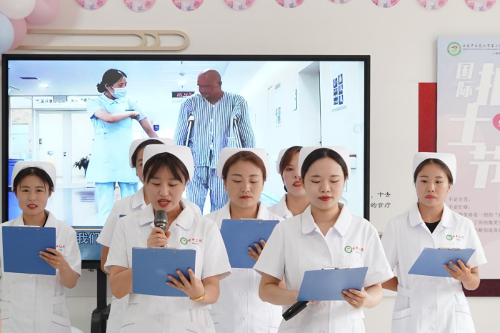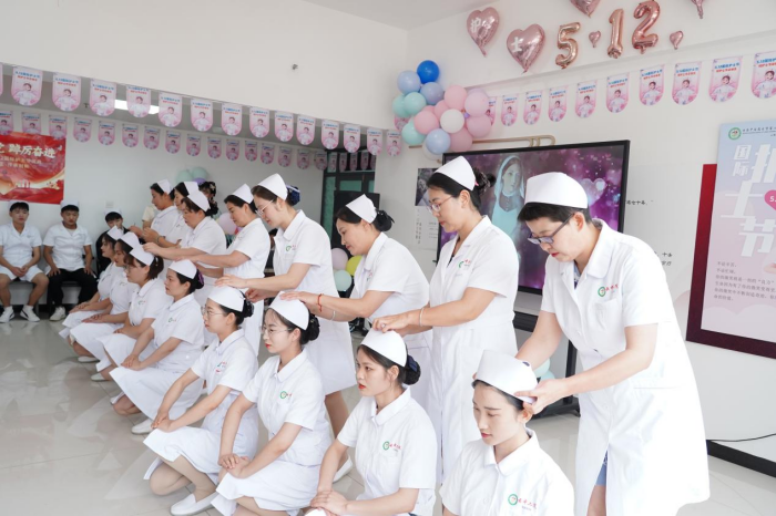医院为新入职护士举行了由护理前辈戴上纯洁神圣的护士帽的授帽仪式,全体护理人员面向南丁格尔画像重温誓言,并接续点燃手心的烛火,将这份荣耀与责任庄严传递。