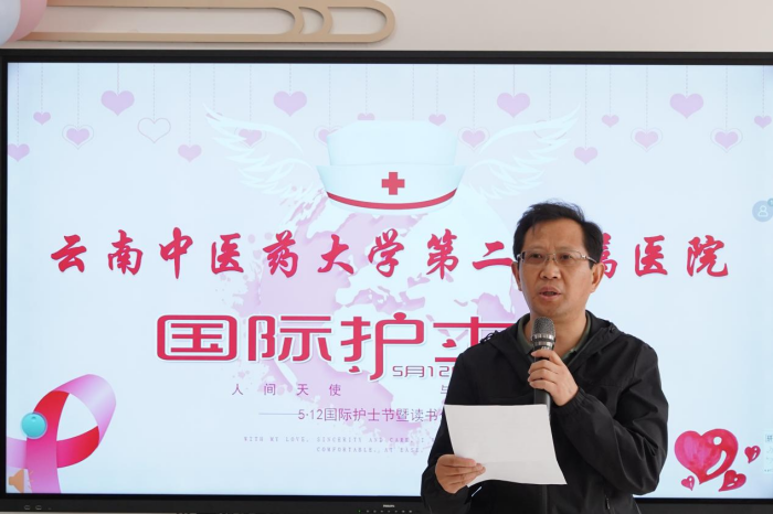 分管副院长杜义斌及护理部主任左靓对护理工作作出展望,向全院护士送上节日祝福。