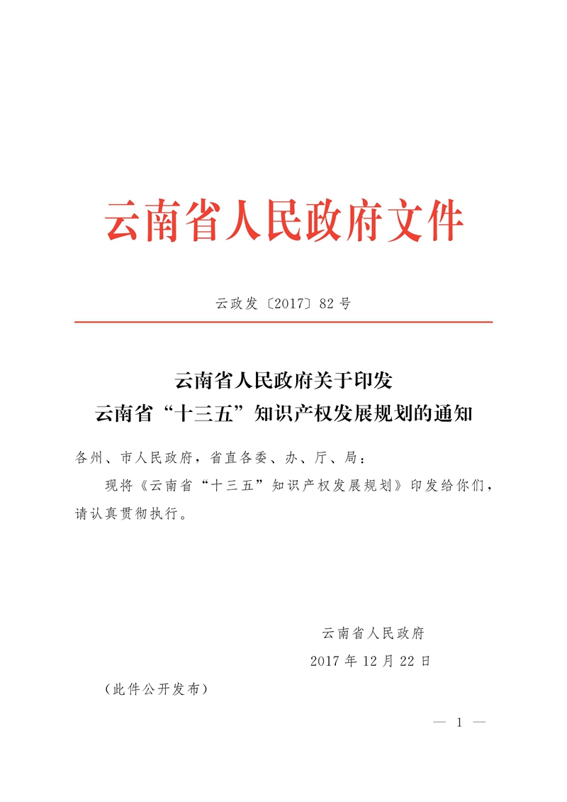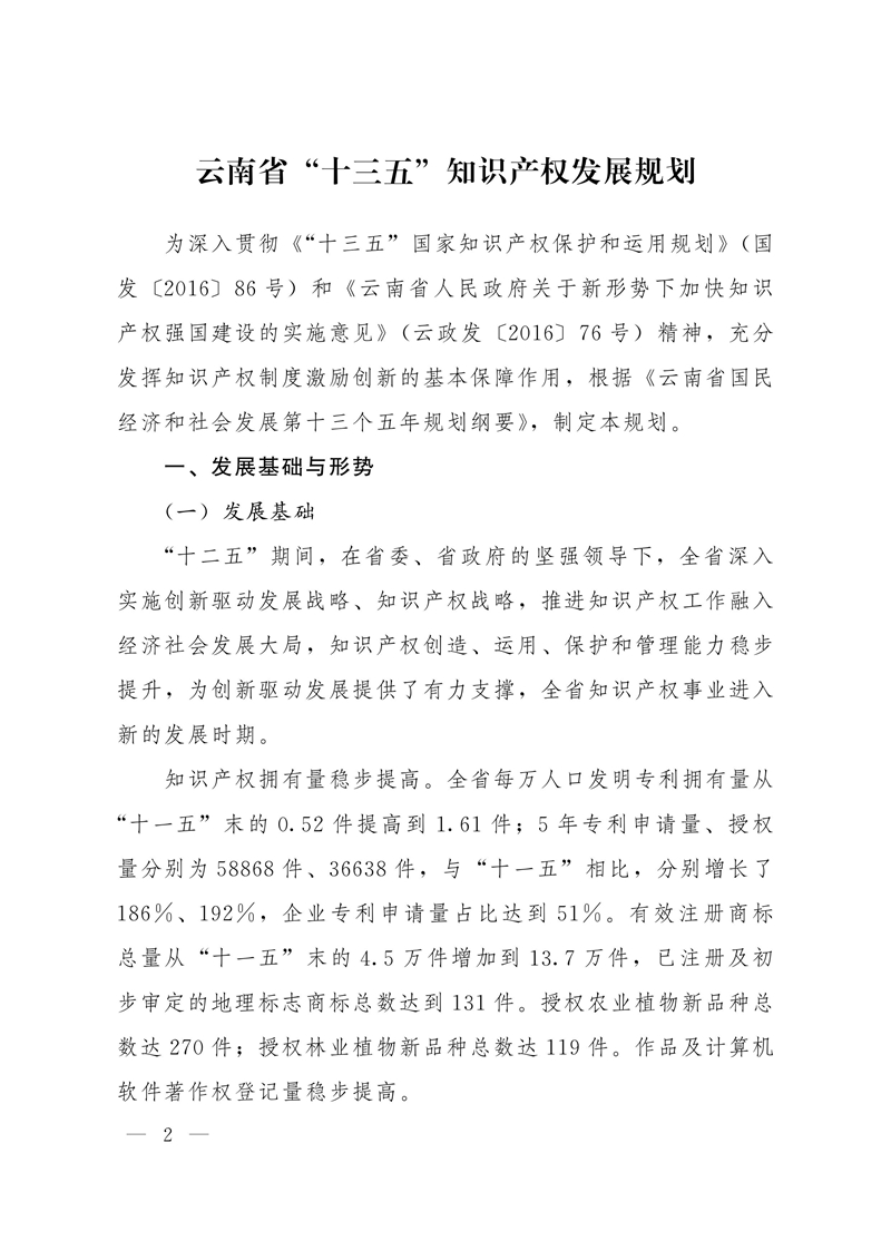 云南省人民政府关于印发 云南省 “十三五” 知识产权发展规划的通知.pdf