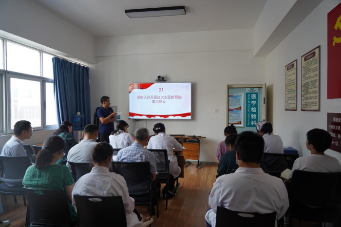 云中二院讯(通讯员 王馨苑)为进一步学深悟透习近平新时代中国特色社会主义思想,推动主题教育走深走实,7月31日,医院党委书记唐柱生为医院党总支书记、党支部书记及党员代表开展主题教育专题宣讲。