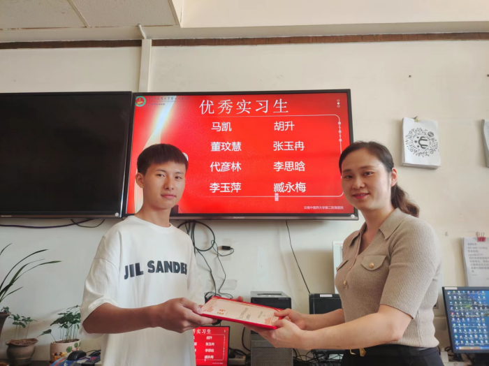 云中二院讯(通讯员 杨眉)9月14日,医院护理部在703办公室召开云南中医药大学第二附属医院暨云南商务职业学院2023年优秀护理实习生表彰会,护理部主任左靓、干事杨眉及部分实习生代表参与了本次表彰会。
