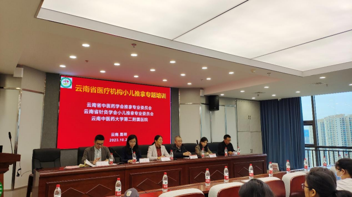云南中医药大学副校长邰先桃、云南中医药大学第二附属医院党委书记唐柱生出席开幕式,院长袁恺主持。培训班邀请浙江中医药大学许丽教授,昆明市中医医院杨叶娇主治医师,云南中医药大学邰先桃教授、杨若俊副教授、胡鸾副教授、张粲博士、罕艳菊主治医师、邵长丽讲师、张吉讲师,围绕小儿推拿治疗的特色优势病种的诊疗、手法等进行细致深入的讲解和实操培训。