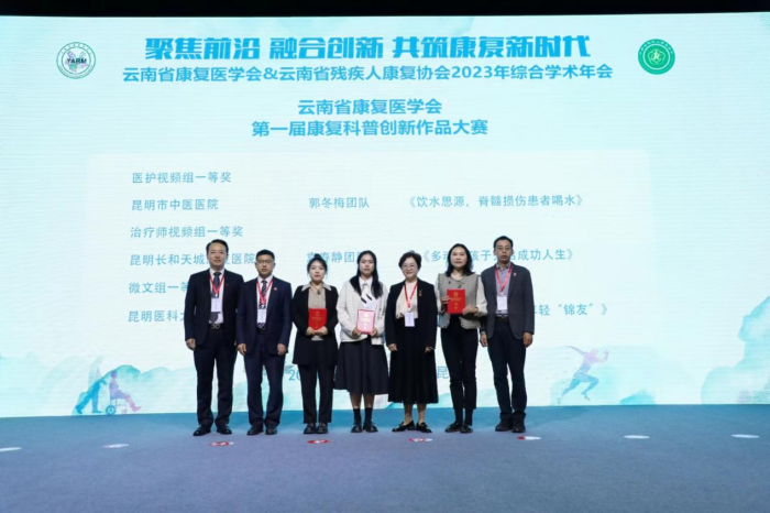 会上,唐柱生为云南省康复医学会第一届康复科普创新作品大赛获奖者颁奖。