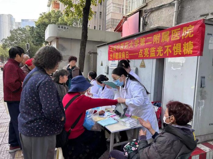 义诊现场,医护人员为社区居民宣讲了糖尿病的危害、防治及诊治知识,并提供免费疾病咨询、血糖检测、血压测量等医疗服务,认真倾听现场每一位居民的病情和诉求,针对他们提出的健康问题和疑虑给予个性化、细节化诊治服务。一位群众表示“我年纪大了,腿脚不方便,患糖尿病多年,经常到医院找医生感觉很麻烦,这些医生到家门口开展义诊,向我们宣讲健康知识,感觉好方便,也很实在”。