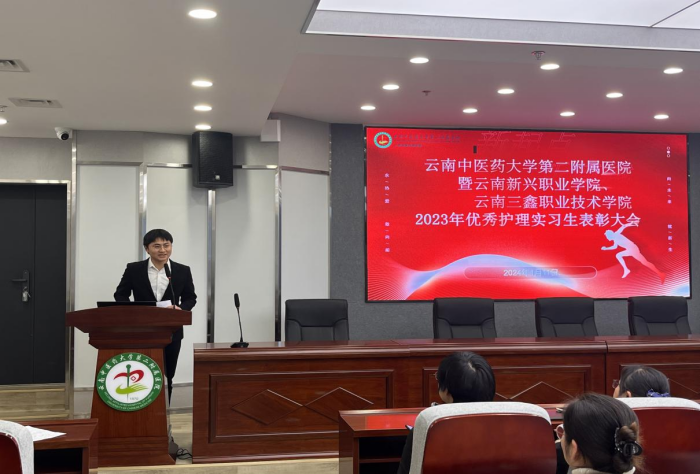 云中二院讯(通讯员 杨眉)2024年1月11日,云南中医药大学第二附属医院护理部在学术报告厅召开2023届护理优秀实习生表彰大会。护理部主任左靓、各临床科室护士长、优秀带教老师以及全体护理实习生共100余人参加,会议由护理部教学秘书杨眉主持。