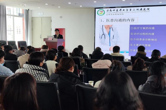 在双江县中医医院,蒋旭皎副主任医师为双江县中医医院的医务人员做了“浅谈医患、护患沟通”专题培训。
