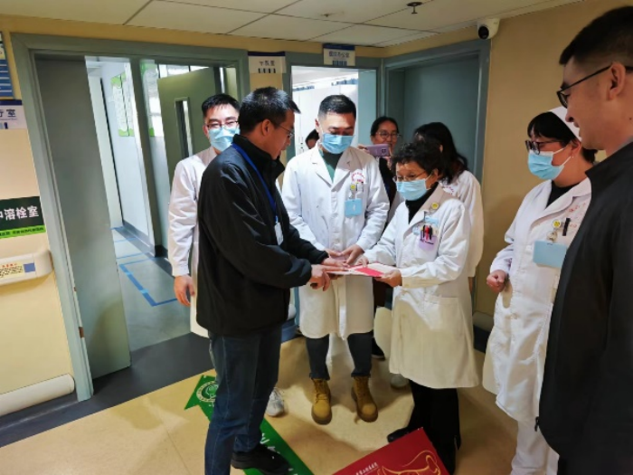 云中二院讯(通讯员 闻丽蓉)为贯彻落实好习近平总书记关于安全生产工作的重要指示批示精神,按照上级部门工作部署,防范各类安全事故,切实做好节假日期间医院各项保障工作。2月7日上午,医院党委书记唐柱生、院长袁恺带队,医院党政班子成员带领职能科室负责人等深入各科室开展节前行政查房,并慰问一线医务工作人员。
