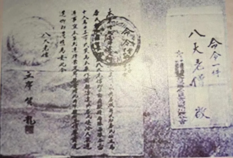 (贺龙给八大老僧请派骑将作前驱的公文)
