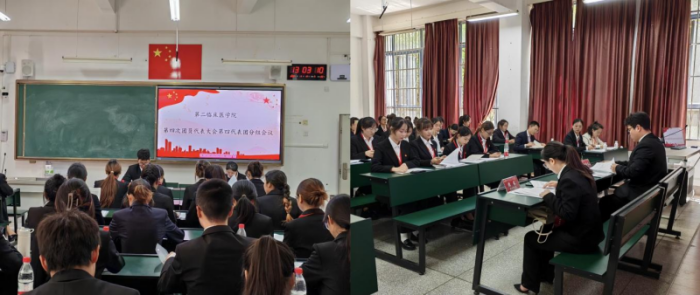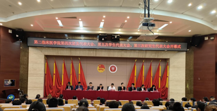 大会开幕式上,黄婷婷代表校团委致辞,向大会的召开表示热烈的祝贺,她指出第二临床医学院团学组织,要紧扣共青团的政治责任,切实把青年学生紧紧凝聚在党的周围、加强青年学生思想政治引领;广泛引导青年学生在服务大局中成长成才,持续推动全面从严治团不断深入。唐柱生对学院团学组织在强化思想引领、志愿服务、提高学生综合素质能力等方面给予了高度评价和充分肯定。他号召全院青年学生,要做坚定信念的有志青年、善作善成的有为青年、胸有韬略的有识青年、奋力拼搏的有德青年,为学校、学院、医院的高质量发展贡献青春智慧与力量。