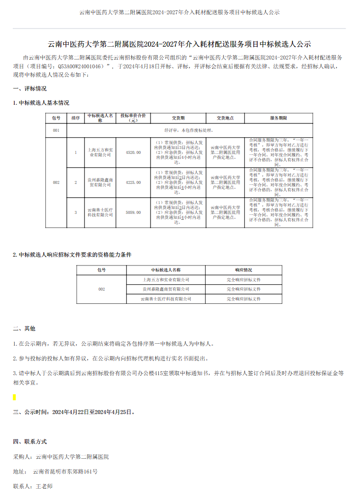 上一篇:云南中医药大学第二附属医院2024-2027年医用试剂配送服务项目中标候选人公示