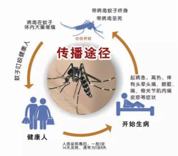埃及伊蚊和白纹伊蚊是本病的主要传播媒介。在非流行期间,伊蚊可能是病毒的储存宿主。