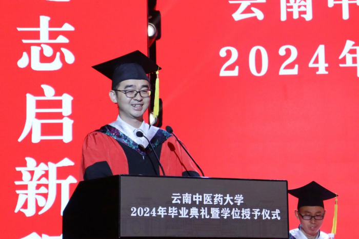 袁恺鼓励毕业生们要坚守对中医药事业的热爱与执着,牢记使命,勇担责任。终身学习,追求卓越,成就辉煌。注重品德修养,树立正确价值观,践行医德医风。展望未来,书写属于自己的人生华章。