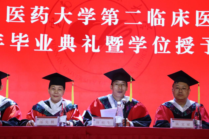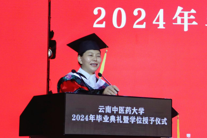 邰先桃在毕业典礼上致辞,引用百会、神阙、涌泉等三个分别归属于督脉、任脉和足少阴肾经的穴位,寄寓了对毕业生的明大德、成大医、担大任的殷切期望。希望毕业生们遇到挫折时打开行囊中的“远志”“厚朴”“白芷”和“苁蓉”,用手摸摸“百会”“神阙”和“涌泉”,整装再出发,鼓励毕业生们关注自身健康,增强中医的疗效自信和文化自信,传承中医精华,为中医事业注入新活力。