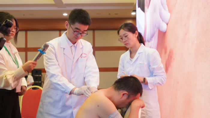 论坛还特别安排了针灸推拿技术实操演示环节。医院党委副书记、院长袁恺和推拿科主任李应志分别进行了针灸手法和推拿手法的实操演示,针灸科主任潘雷主持该环节。整个实操演示环节在热烈而有序的氛围中进行,现场与会者踊跃报名,亲身体验针刀疗法和推拿疗法。