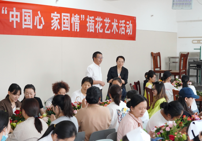 为热烈庆祝中华人民共和国成立75周年,弘扬爱国主义精神,展现医院女职工的风采与情怀,9月27日,医院工会、女职工委员会组织开展了“中国心 家国情”女职工插花活动。