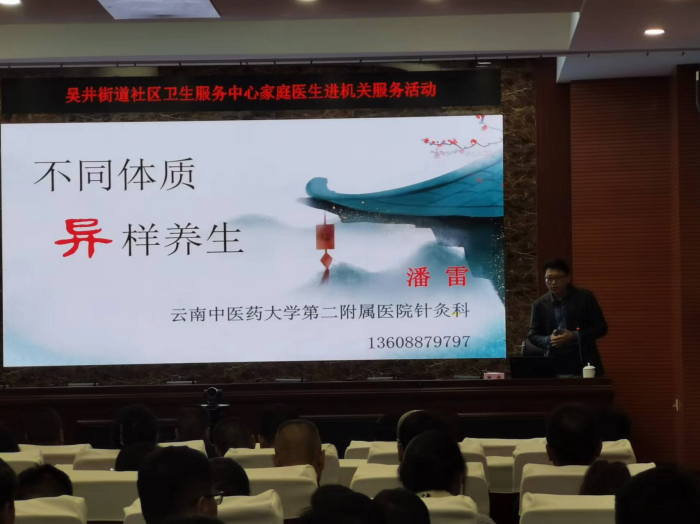 同时,考虑到机关干部职工长期伏案工作的特点,针灸科、推拿科专家还现场为职工进行治疗,并以“不同体质 异样养生”为题进行为现场干部职工开展健康讲座。帮助他们缓解肩颈疲劳,预防肩周炎、颈椎病等疾病的发生。