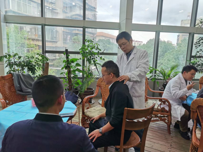活动现场,中医科专家为干部职工们进行了中医把脉诊疗,根据他们的体质和病症,提出了中医诊疗建议及方案。