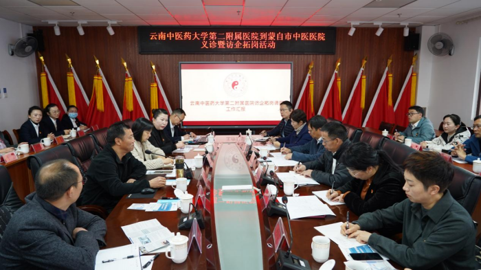 红河州卫生健康委副主任、州中医药管理局局长段永生,州中医药管理科科长李颖及州第一人民医院、红河州第四人民医院、红河州妇幼保健院等单位领导出席义诊启动会和访企拓岗座谈交流会,蒙自市中医医院党委书记胡纤龄、院长太江文、纪委书记吕燕、副院长关安平,及相关科室负责人参加会议。