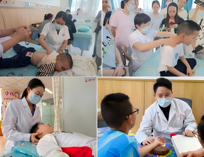 会议期间,团队累计为68名患儿提供义诊服务,就诊小朋友们通过亲身体验,随拨随应的效果,更加增强了家长们对中医推拿的疗效自信。
