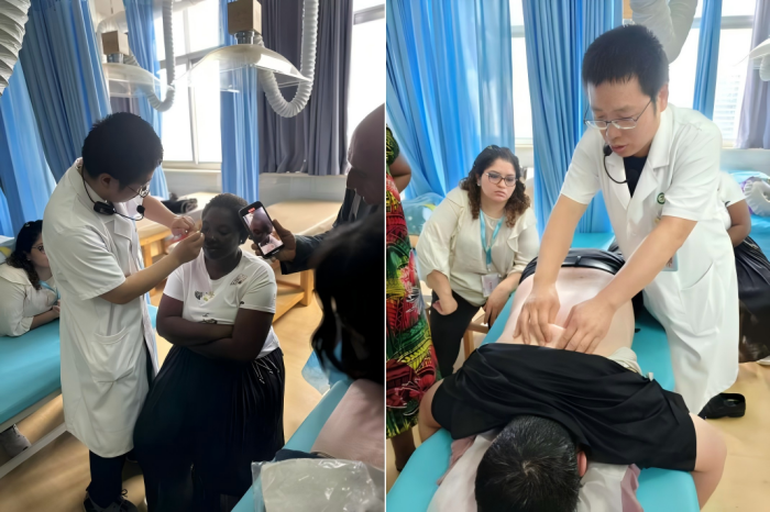 随后,交流团成员亲自体验了中医外治疗法的操作过程。在医护人员的指导下,他们尝试了推拿、针灸等手法,切身感受了中医技术的独特魅力。