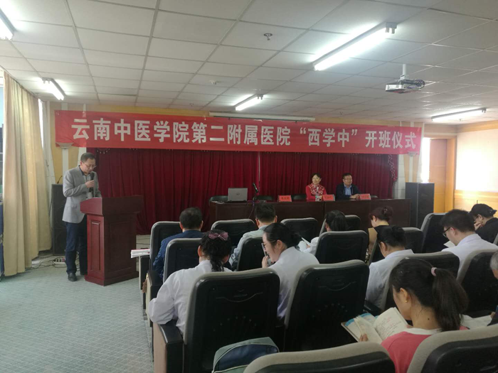 在省委、省政府的关心下,在省卫健委、省教育厅、省交通运输厅的积极努力下,2018年云南省交通中心医院改建为云南中医学院第二附属医院,性质为中西医结合医院。为实现5年内建成以血栓病防治、针灸推拿、康复治疗为特色的、省内一流的三级甲等中西医结合医院的发展目标,在云南中医药大学校领导及继续教育学院的大力支持下,2019年3月29日第二附属医院 “西学中”培训正式拉开序幕。