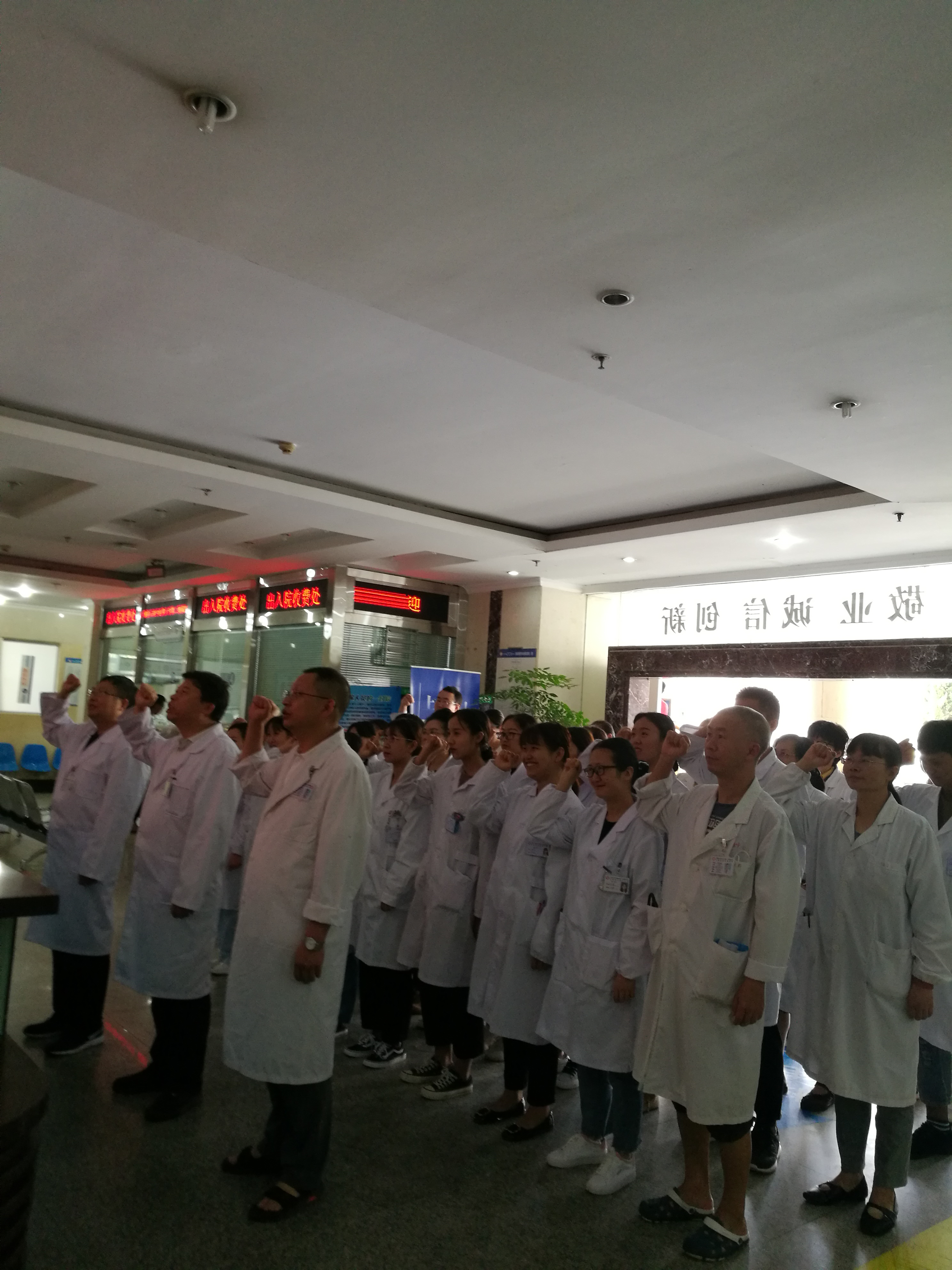 陈院长作为领誓人,带领全体宣誓人高举右手宣誓:我志愿献身人类的健康事业,自觉维护医学的尊严和神圣;敬佑生命,救死扶伤,平等仁爱,尊师重道;诚实守信,恪守医德,精益求精,慎思笃行。以上誓言,源于心,践于行!