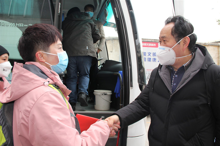动员会上,王翠岗书记代表校党委、行政对医疗队员致以崇高的敬意。他对附二院医务人员在疫情防控的人民战争中,不惧个人安危,纷纷投入抗击疫情的洪流,特别是对医院充分发扬“一方有难八方支援”的精神,克服困难,在相距不到24小时,连续派出两支医疗队,给予肯定。他要求医院及医疗队队员,一是要坚决贯彻落实党中央的重要部署,牢记人民利益高于一切,关键时刻冲在一线,自觉接受党性锻炼和实践考验,在疫情防控第一线认真践行初心使命、体现责任担当,让党旗和附二院医疗队队旗在防控疫情斗争中高高飘扬;二是要坚定树立战胜疫情的决心和信心,攻坚克难,坚决打赢疫情防控阻击战;三是要落实科学的防护措施,坚决完成好疫情防控各项工作;四是要落实医疗队员待遇保障,贯彻落实上级有关文件精神,了解医疗队员的需求和困难,及时解决队员的后顾之忧;五是要发挥党员的先锋模范带头作用,党员、干部要冲锋在前、勇挑重担,团结队员,凝聚起众志成城、共克时艰的强大正能量,带领医疗队完成任务、胜利归来。