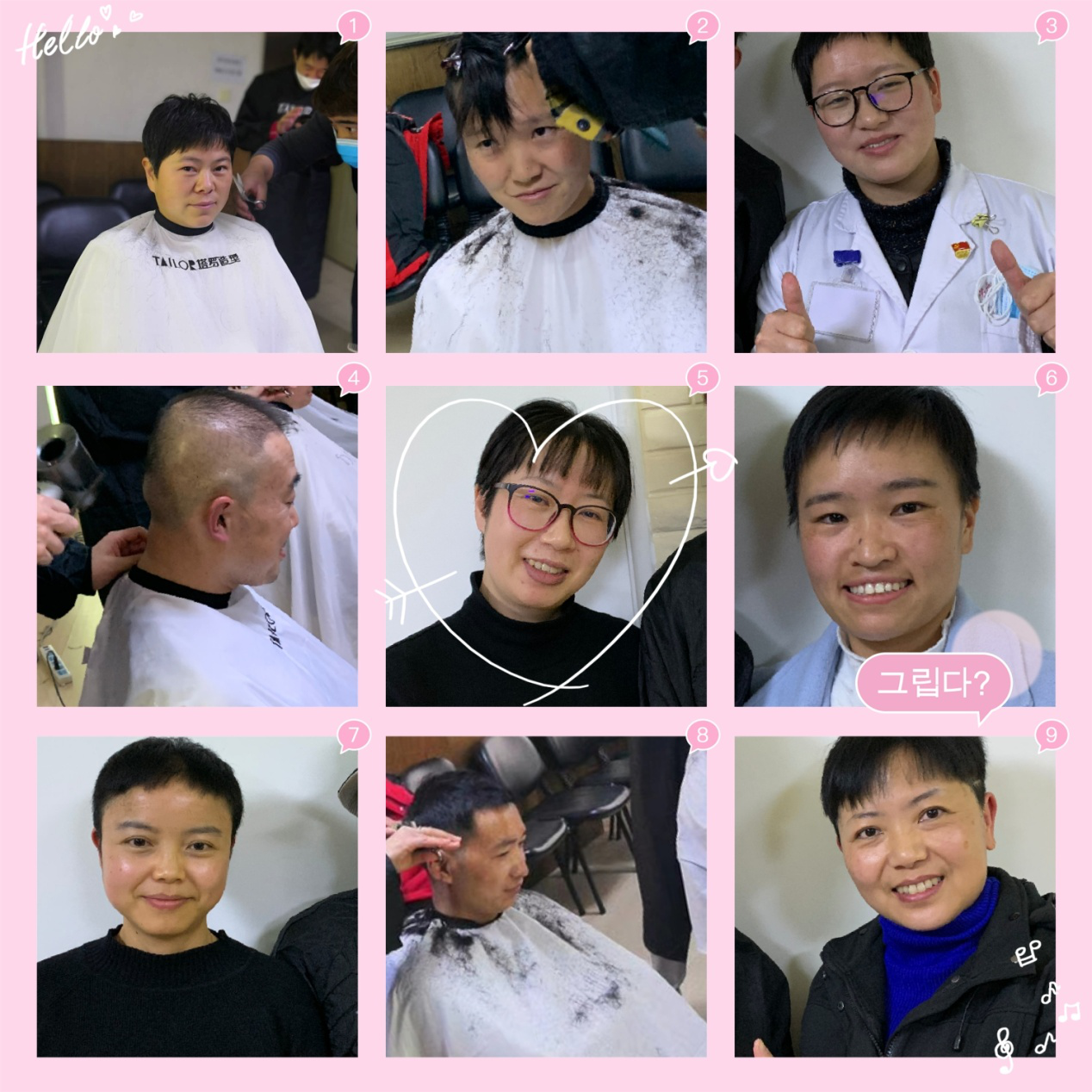 一把椅子,一块围布,伴随着剪刀“咔嚓”的声音,女队员的一缕缕青丝被剪下,男医生的平头变成了光头,一簇簇剪掉的长发是他们对抗击疫情义无反顾的决心,也是对生命的大爱!
