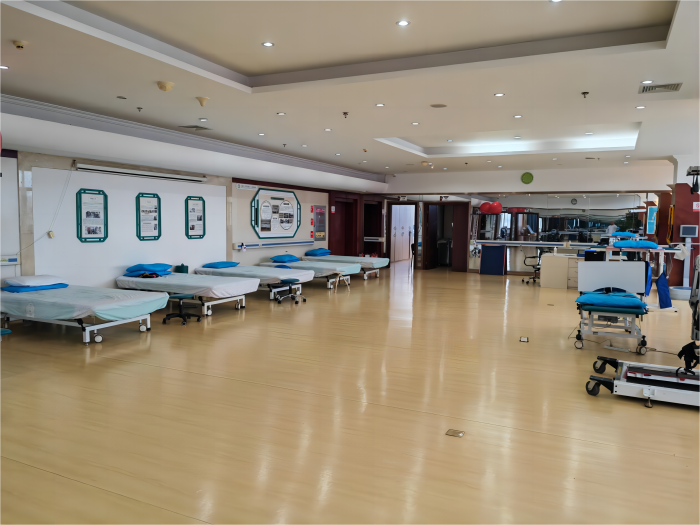 康复治疗中心基础设施设备齐全,设有运动治疗大厅(PT)、言语认知治疗室(ST)作业治疗大厅(OT)物理因子治疗室等。先后引进了国内外先进的康复治疗设备: 上肢康复机器人、下肢康复机器人,模拟仿真评价训练系统、智能VR认知言语训练系统、主被动下肢训练器(MOTOmed)、电子生物反馈治疗仪、智能蜡疗恒温箱、超声波治疗仪、微波治疗仪、气压治疗仪、磁振热治疗仪等。
