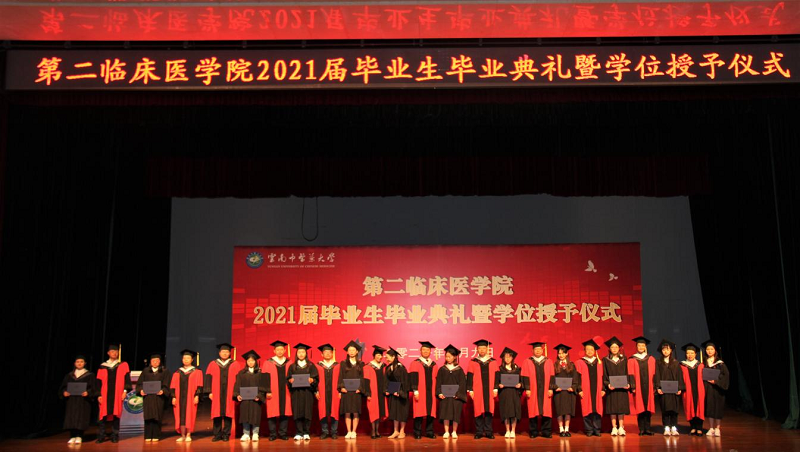 云中二院讯(通讯员 杨美玲)2021年6月9日上午9点,云南中医药大学第二临床医学院2021届毕业典礼暨学位授予仪式在兰茂堂隆重举行。校党委副书记郭平、教务处处长张庆芝应邀出席典礼。第二临床医学院党委书记陈祖琨、副院长罗启德、范源、葛良栋、毕业班班主任辅导员、487名毕业生和部分低年级学生代表参加,典礼由学院党委副书记杨剑南主持。