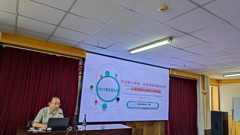 云中二院讯(通讯员 李剑峰)为进一步推进等级医院建设评审工作,增强广大干部职工对评审工作的认知和了解,医院于8月8日邀请云南省等级医院评审专家、云南省中医医院钱锐主任开展了“牢记初心使命,传承创新发展中医药——从等级医院创建和评审说起”的主题培训。医院党委书记陈祖琨、院长邰先桃及全体党政领导、中层干部参加了会议。