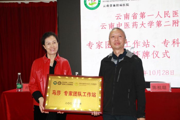 授牌仪式上,医院党委书记陈祖琨致词。他指出专家工作站、专科联盟医院的挂牌,将有效激活我院的医疗资源,充分发挥专家们的医疗技术和科研优势,极大地提升医院的核心竞争力和知名度,也将显著提升我院人才队伍,提高我院业务技术水平,不断增强创新能力,加快推进医院发展,希望在各方面共同努力下,云南中医药大学第二附属医院的“专家工作站”结出丰硕成果,实现两院携手共赢局面。