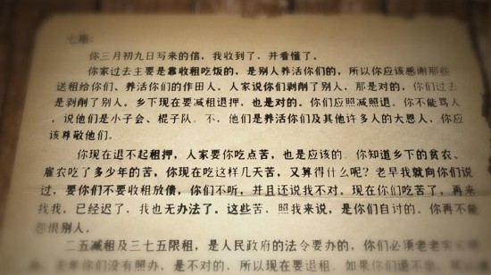 刘少奇在信中这样写道:“你家过去主要是靠收租吃饭的,是别人养活你们的,所以你应该感谢那些送租给你们、养活你们的作田人。你们以后应该劳动,自己作田,否则,你们就没有饭吃……我当了中央人民政府的副主席,你们在乡下种田吃饭,那就是我的光荣。如果我当了副主席,你们还在乡下收租吃饭,或者不劳而获,那才是我的耻辱。”