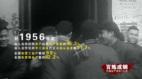 “随着农业合作化突飞猛进的发展和社会主义工商业的发展,资本主义工商业的社会主义改造和手工业合作化的高潮,也提前到来了。”