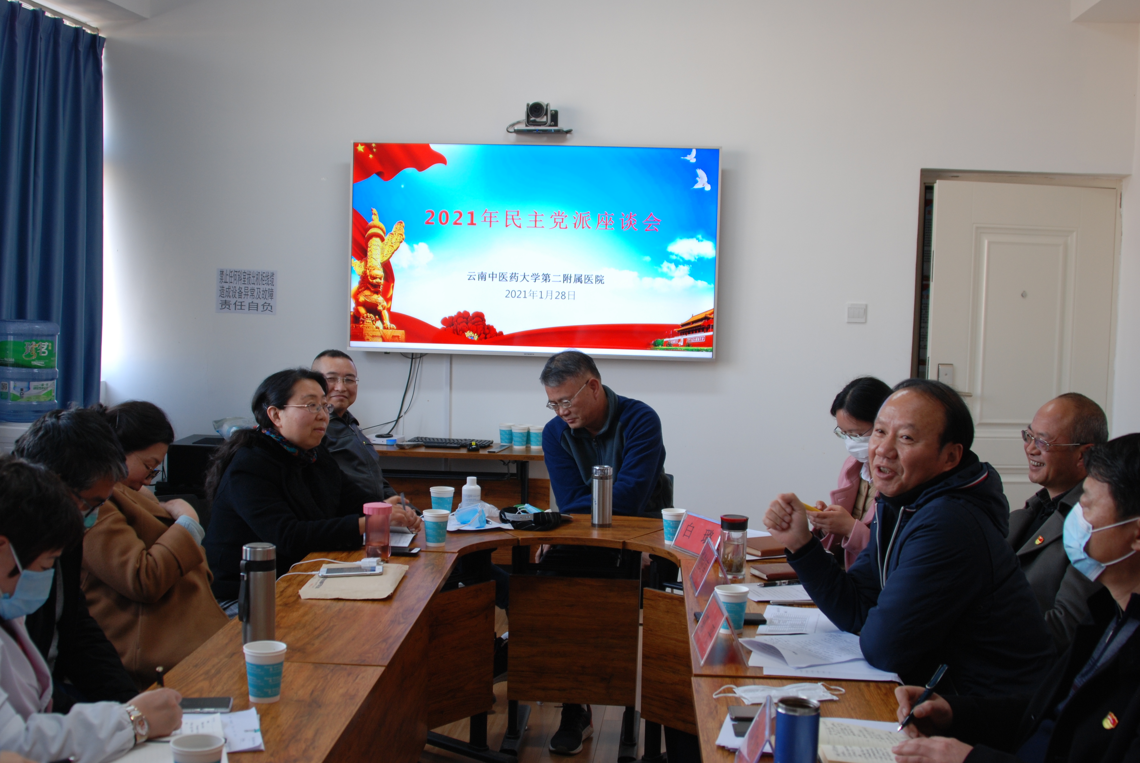 查看详情1月28日,医院党委召开2021年度民主党派座谈会。校党委副书记郭平、院党委书记陈祖琨、院纪委书记陈文斌、校党委统战部办公室主任白璐,各党总