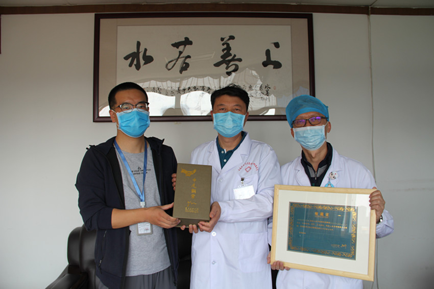 查看详情2020年4月22日,云南省博物馆保管部谭利刚代表云南省博物馆向我院送来了收藏证、感谢信及纪念品,院长陈祖琨、医院第二批赴鄂医疗队长刘嘉瑞代