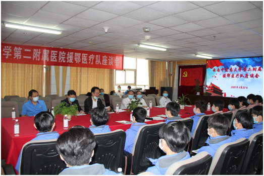 4月23日下午,云南中医药大学第二附属医院在学术报告厅举行了欢迎援鄂医疗队凯旋座谈会。云南中医药大学党委书记王翠岗、党委副书记郭平,医院党政